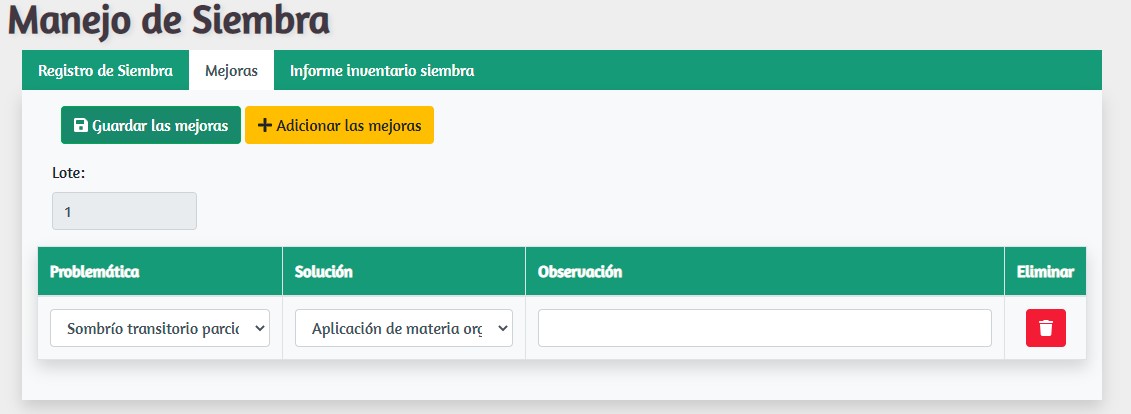 Mejoras siembra